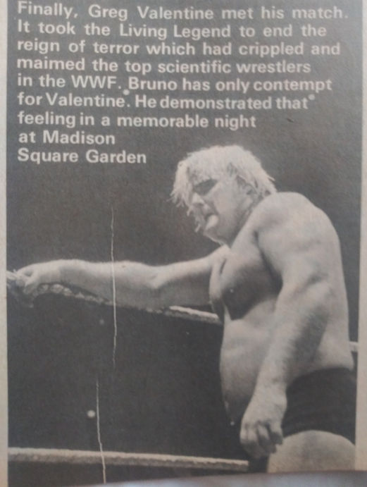 Following this, we run across articles about how Dusty Rhodes returned to the WWF after losing his NWA title to Harley Race, and Greg Valentine being humbled by a returning Bruno Sammartino.