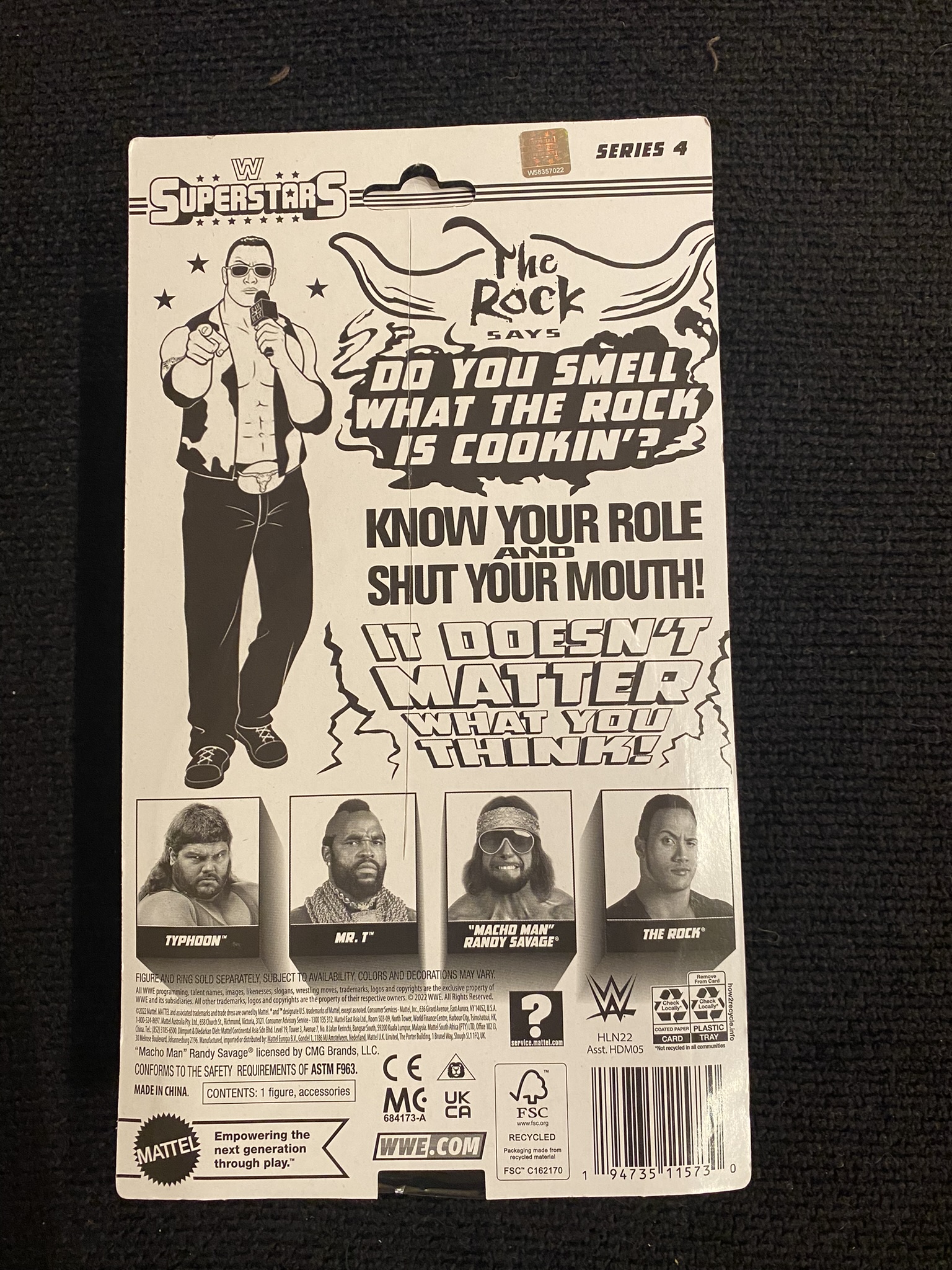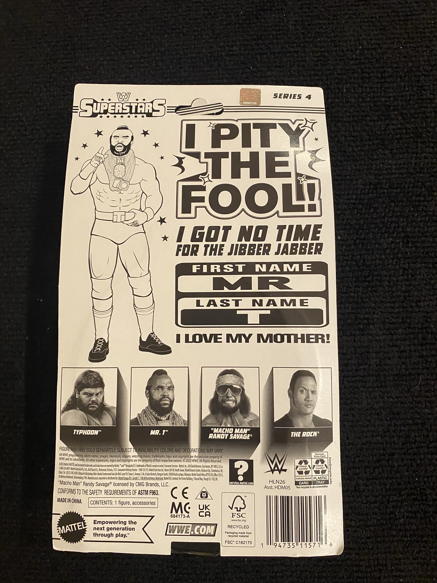 The reason we're doing Series Four and Five together is because two of the figures are in both sets, making it difficult to distinguish them as a proper set. Much like the previous sets of WWE Superstars, if you line up each of the cards side-by-side, you notice that the background pictures kind of run onto each other... which is a neat little piece of continuity.