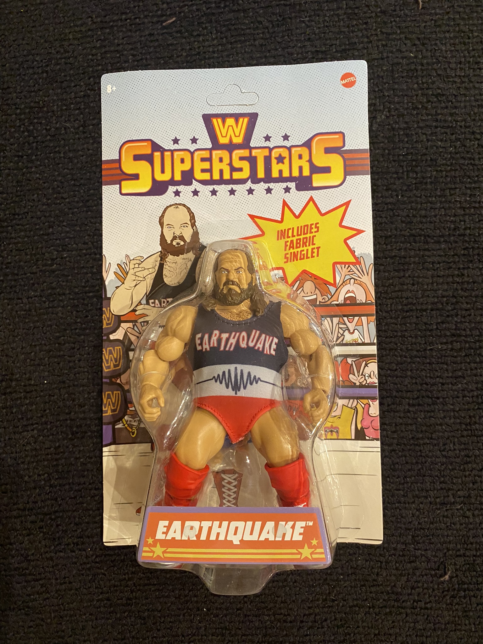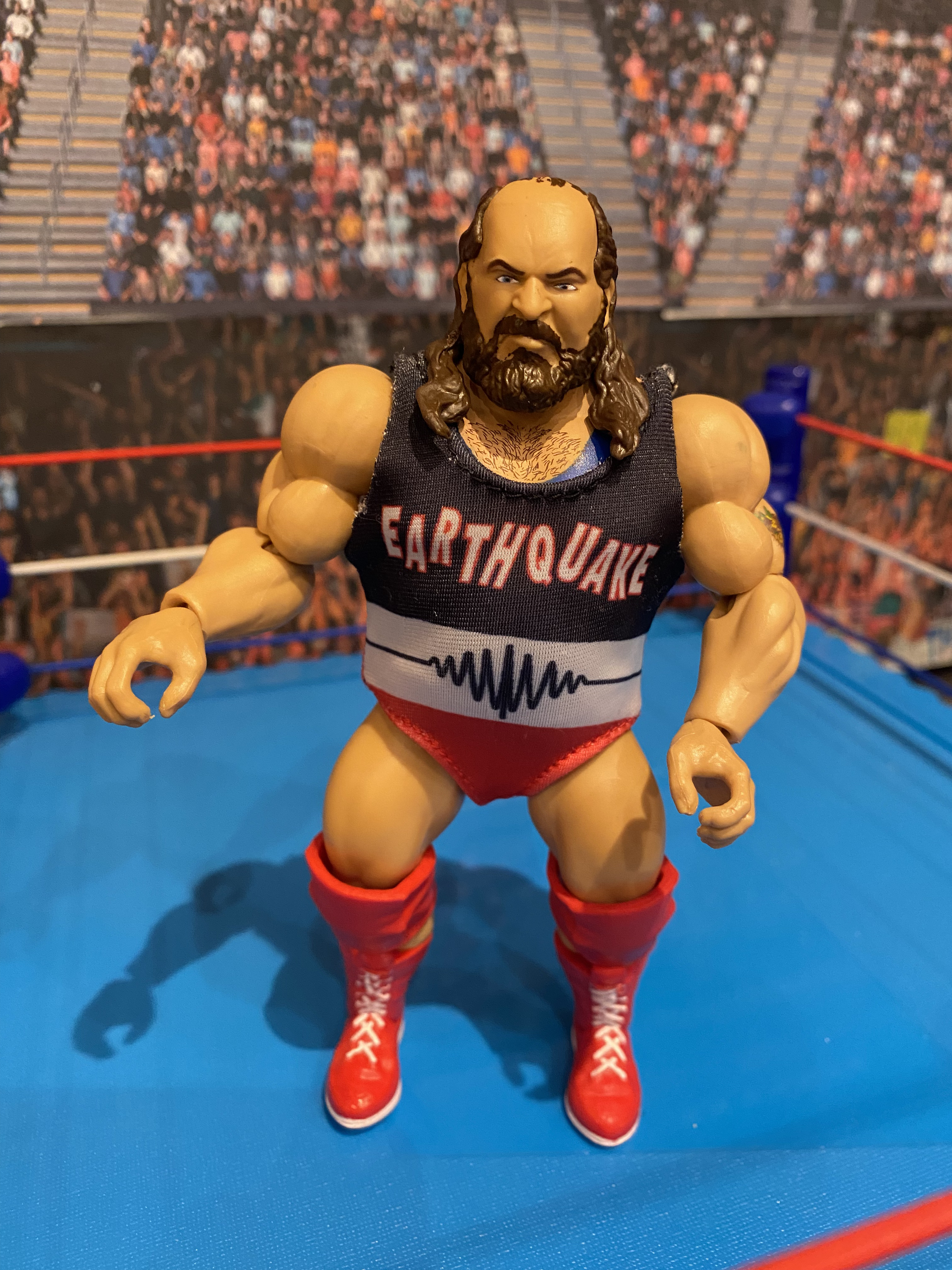 Rounding out Series Five is Earthquake, with a neat twist on a two-in-one figure. Not only can you remove his early 1990s Earthquake singlet to see a separate singlet underneath (a nod to his earliest WWF days), but you can also switch out his red boots for blue boots to be color coordinated.