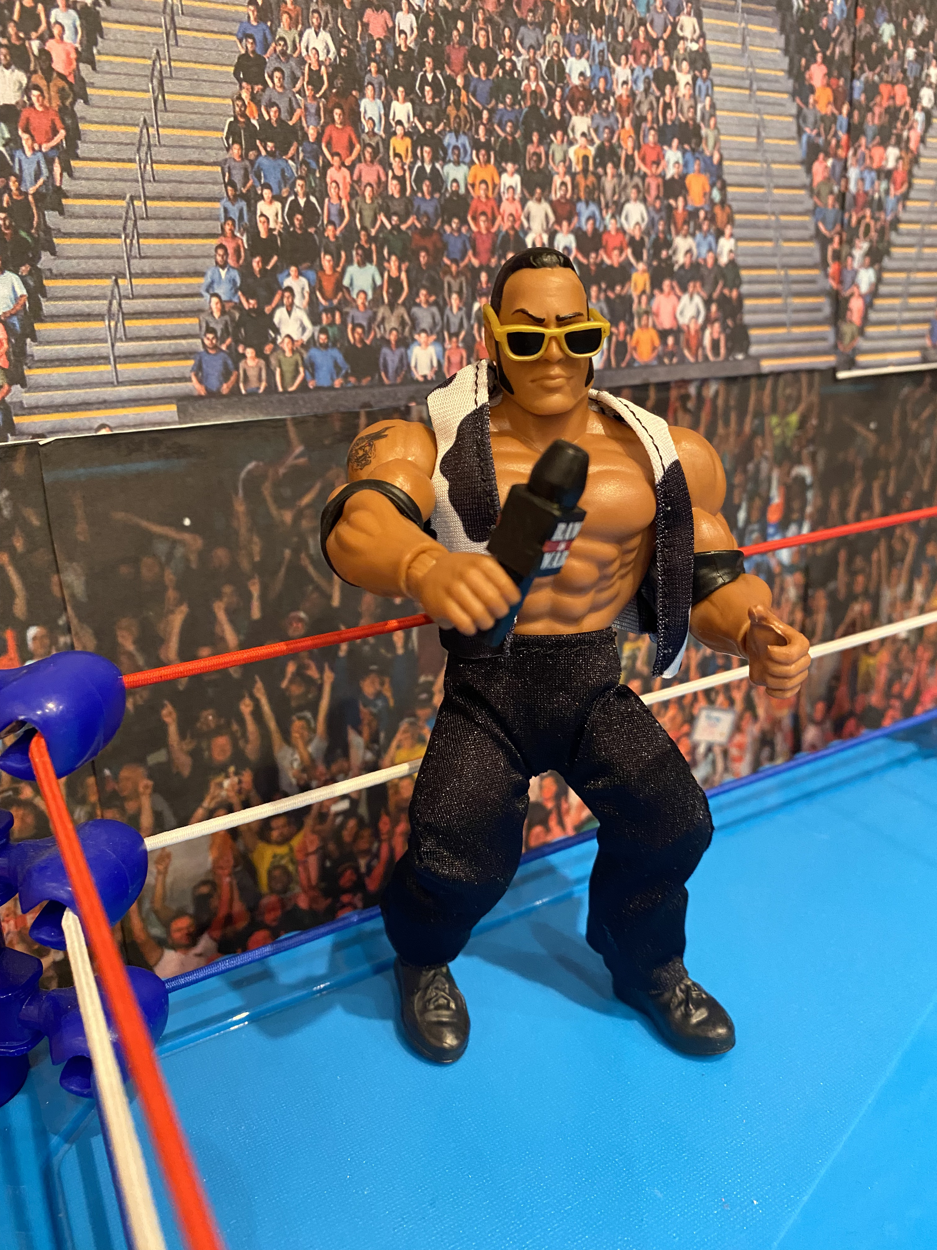 The Rock is in his gear from the late 1990s/early 2000s, and while it's a decent likeness and everything, there's nothing here that we haven't seen before in a Rock figure. The Great One has a removable vest and pants.