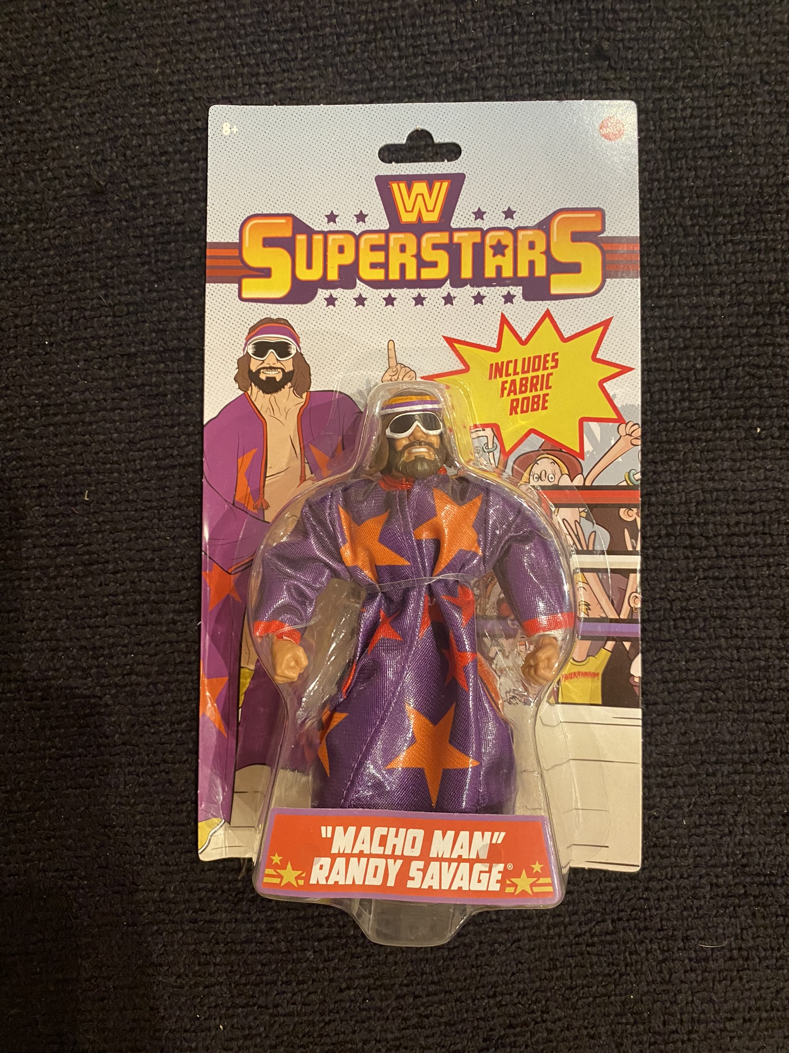 Randy Macho Man Savage also stands out with his purple cape with orange stars on it. While the rest of it is similar to many Randy Savage figures out there, you absolutely need a Macho Man in this retro-style collection.
